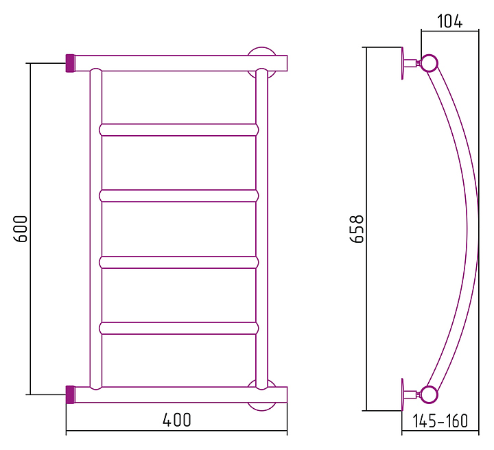 Полотенцесушитель водяной Стилье Минор 0602 60х40 см без покрытия