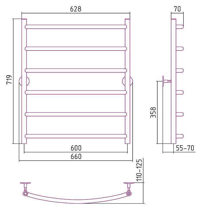 Водяной полотенцесушитель Стилье Универсал-50 предназначен для подогрева и сушки полотенец, а также для обогрева ванных комнат в квартирах, коттеджах и частных домах. Модель оснащена 6 перекладинами для удобного использования. Изделие выполнено из нержавеющей стали AISI 304 L, отличающейся прочностью, долговечностью и устойчивостью к перепадам температур. Комплект поставки: