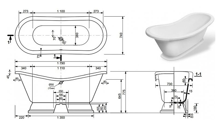 Ванна ЭСТЕТ Бостон 180 ФР-00001046 180х74 мм на подиуме