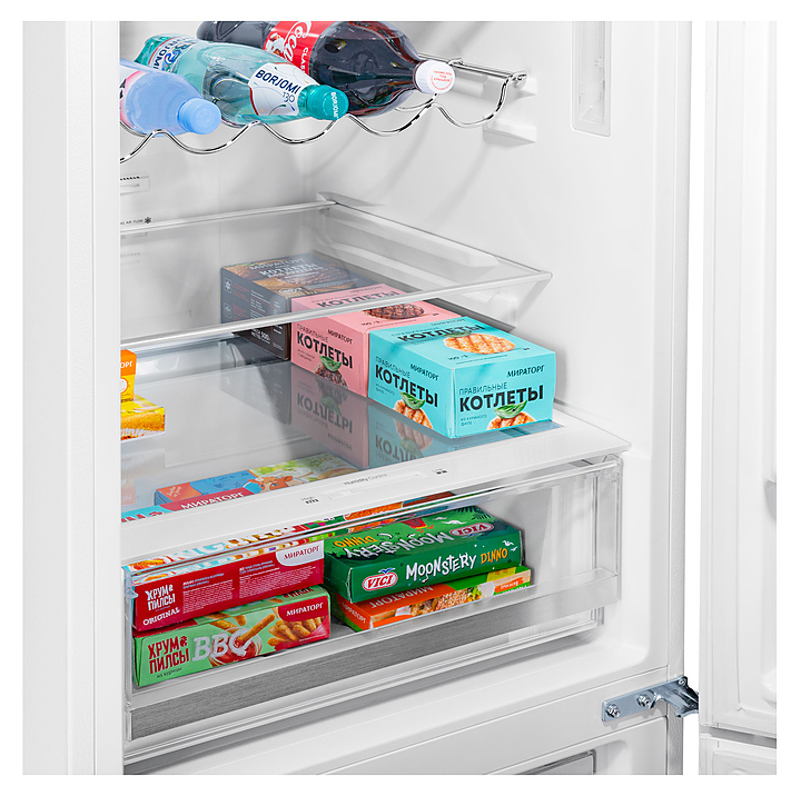 Холодильник Maunfeld MFF185NFW предназначен для охлаждения и кратковременного хранения скоропортящихся продуктов, напитков и лекарств в частных домах, квартирах, отелях и офисах. Модель оснащена сенсорной панелью управления на двери, внутренней светодиодной подсветкой холодильной камеры, регулируемыми по высоте ножками и утопленными ручками. Корпус выполнен из металла, фасад - из закаленного стекла, внутренняя часть - из антибактериального пластика. Особенности: