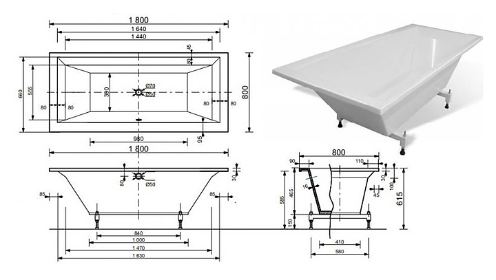 Ванна ЭСТЕТ Стелла 180 ФР-00002809 180х80 мм