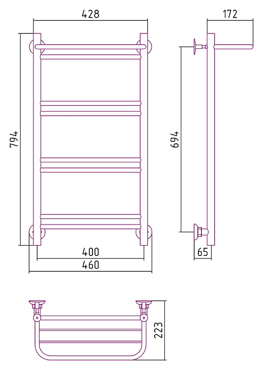 Полотенцесушитель водяной с полкой Стилье Версия-Н1 80х40 см без покрытия
