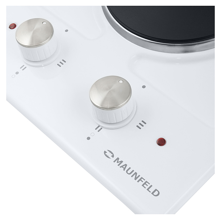 Варочная панель Maunfeld EEHE.32.4W используется в квартирах и частных домах для приготовления или разогрева широкого спектра блюд в наплитной посуде. Модель оснащена 2 чугунными конфорками быстрого нагрева HP RAPID и 2 трехступенчатыми поворотными регуляторами мощности нагрева. Корпус выполнен из металла, покрытие поверхности - эмаль, переключатели - из высокопрочного термостойкого пластика с хромированными накладками, обрамление конфорок - из нержавеющей стали. В комплект поставки входят кабель для подключения и набор креплений. Особенности: