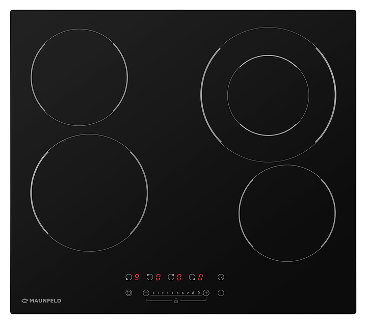 Варочная панель Maunfeld EVCE.594F.D-BK используется в квартирах и частных домах для приготовления или разогрева широкого спектра блюд в наплитной посуде. Модель оснащена 4 ударопрочными и устойчивыми к царапинам стеклокерамическими конфорками с нагревательным элементом Hi-Light, одна из которых двухконтурная, и сенсорно-слайдерной панелью управления. Нижняя крышка корпуса выполнена из металла. В комплект поставки входят кабель для подключения без вилки и набор креплений. Особенности: