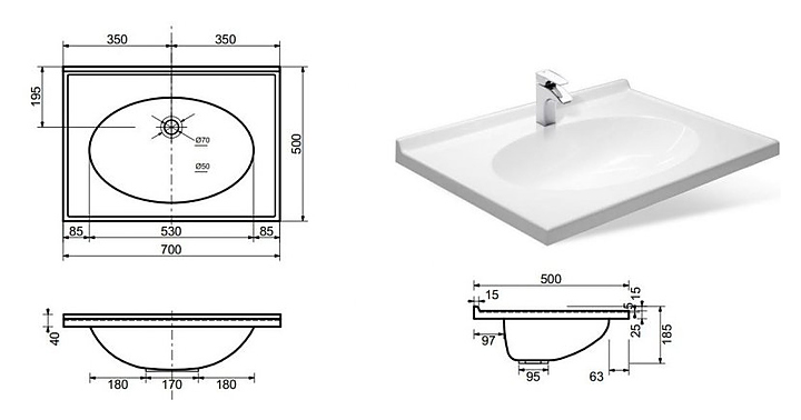 Раковина ЭСТЕТ Лилия 70 ФР-00000784 выполнена в современном стиле. Модель оснащена широкими задней и боковыми поверхностями, на которых можно размещать необходимые аксессуары для ежедневного использования. Встраиваемая конструкция позволяет экономить место в ванной комнате для хранения туалетных принадлежностей. Изделие выполнено из литого мрамора, состоящего из мраморной крошки в сочетании с полиэфирным смолами, обладающего повышенной прочностью и устойчивостью к негативным внешним факторам. В комплект поставки входит слив-перелив. Смеситель в комплект поставки не входит и приобретается отдельно. Особенности: