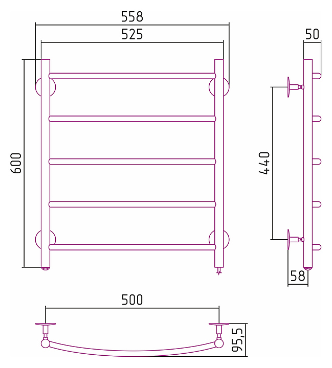 Полотенцесушитель электрический Стилье Формат 40 П 60х50 см без покрытия