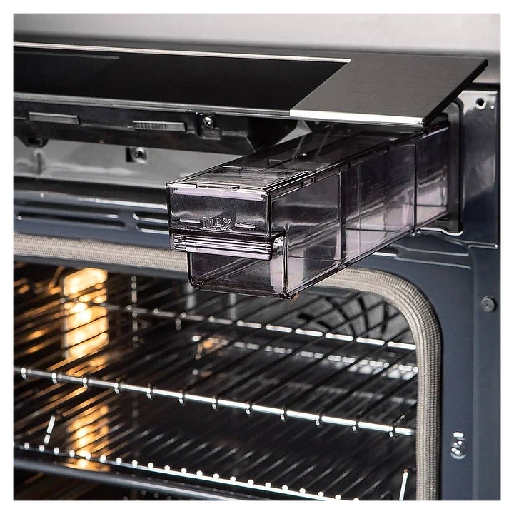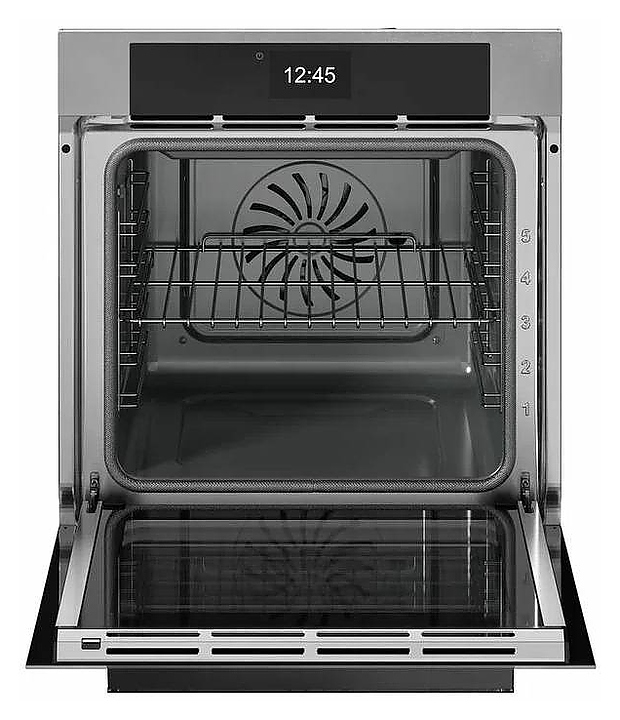 Электрический духовой шкаф Bertazzoni F6011MODVLX предназначен для приготовления большого ассортимента блюд в домашних условиях. Модель оснащена вместительной камерой с кольцевым нагревательным элементом и вентилятором в задней стенке, грилем, 2 съемными стойками с 5 уровнями направляющих для противней, герметичной дверью с прямоугольным смотровым окном, горизонтальной рукояткой и сенсорным жидкокристаллическим дисплеем. Корпус выполнен из нержавеющей стали, направляющие – из металла с хромированным покрытием, облицовка камеры – серая пиролитическая эмаль, покрытие рукоятки и верхней панели – стекло. В комплект поставки входят стандартный эмалированный противень, усиленная решетка для гриля и паровой поддон. Особенности: