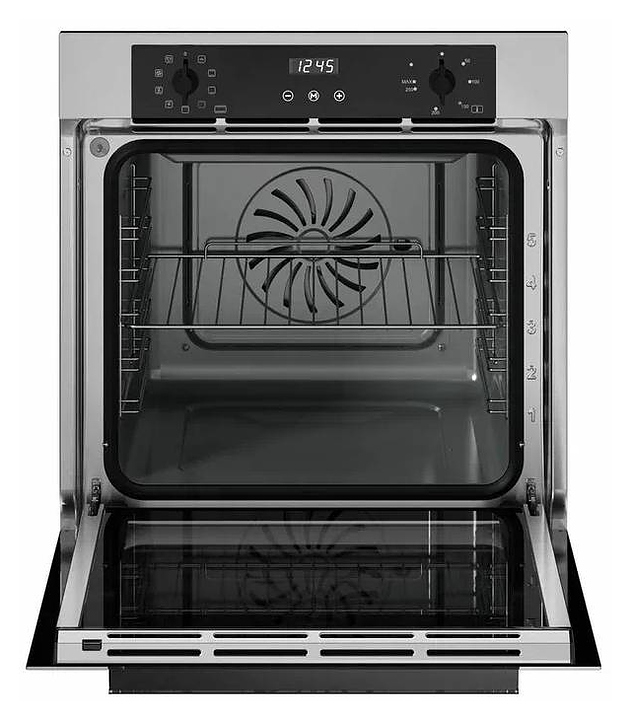 Электрический духовой шкаф Bertazzoni F609MODESX предназначен для приготовления большого ассортимента блюд в домашних условиях. Модель оснащена вместительной камерой с вентилятором в задней стенке, грилем, 2 съемными стойками с 5 уровнями направляющих для противней, герметичной дверью с прямоугольным смотровым окном, горизонтальной рукояткой, 2 поворотными переключателями и светодиодным цифровым дисплеем. Корпус выполнен из высококачественной нержавеющей стали, направляющие – из металла с хромированным покрытием, переключатели – из металла с мякким покрытием Soft Touch, облицовка камеры – серая пиролитическая эмаль, покрытие рукоятки и верхней панели – стекло. В комплект поставки входят стандартный эмалированный противень и усиленная решетка для гриля. Особенности: