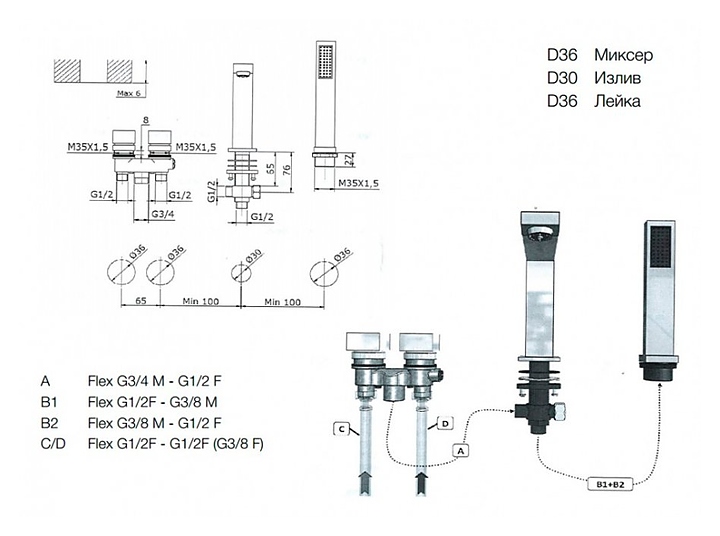 Смеситель на борт ванны с душевым гарнитуром ЭСТЕТ Vega Quadro Lux ФР-00003848 4 элемента