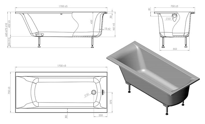 Ванна Астра-Форм Нью-Форм выполнена в современном стиле и идеально впишется в интерьер любой ванной комнаты. Большая глубина ванны обеспечивает большую свободу движений. Изделие выполнено из литьевого мрамора, теплого и приятного на ощупь который мгновенно прогревается, обладает хорошими шумоизоляционными характеристиками и высокой износостойкостью. Слив-перелив и установочные ножки в комплект поставки не входят и приобретаются отдельно. Особенности:
