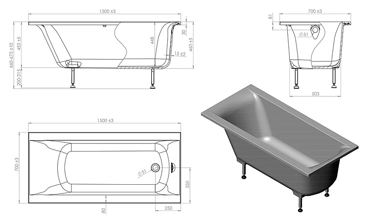 Ванна Астра-Форм Нью-Форм выполнена в современном стиле и идеально впишется в интерьер любой ванной комнаты. Большая глубина ванны обеспечивает большую свободу движений. Изделие выполнено из литьевого мрамора, теплого и приятного на ощупь который мгновенно прогревается, обладает хорошими шумоизоляционными характеристиками и высокой износостойкостью. Слив-перелив и установочные ножки в комплект поставки не входят и приобретаются отдельно. Особенности: