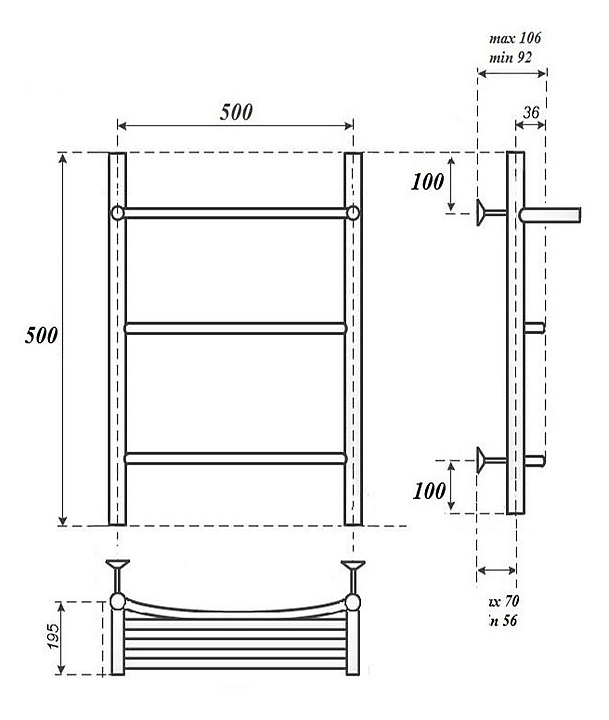 Полотенцесушитель Point PN04155P предназначен для подогрева и сушки полотенец, а также для обогрева ванных комнат в квартирах, коттеджах, частных домах. Модель оснащена полкой, которая выполняет роль подставки для банных принадлежностей, но в то же время сушит вещи. Преимущество водяного полотенцесушителя состоит в том, что в зимнее время года выполняет роль обогревателя и поддерживает температуру в ванной комнате, тем самым не допуская образования плесени и грибка. Изделие выполнено из нержавеющей стали, которая отличается прочностью, долговечностью и устойчивостью к перепадам температур. Комплектация: