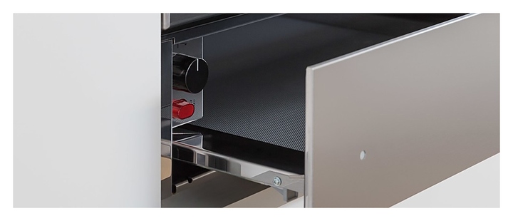 Ящик Bertazzoni WD60N предназначен для подогрева и поддержания в теплом состоянии посуды в домашних условиях. Модель оснащена вместительной камерой с вентилятором и защитной решеткой в задней стенке, электронным термостатом и скрытой за фронтом панелью управления. Корпус выполнен из металла с черным матовым антикоррозийным покрытием фронта, направляющие – из металла. Особенности:
