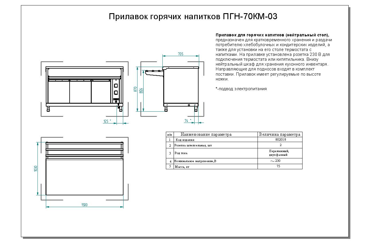 Прилавок для горячих напитков Abat Аста ПГН-70КМ-03