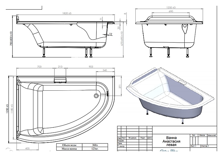 Ванна Астра-Форм Анастасия L 182x125 см левая