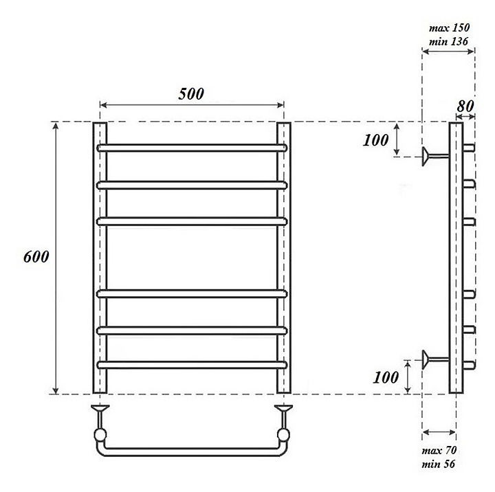 Полотенцесушитель водяной Point Нептун PN09156 П6 500x600, хром