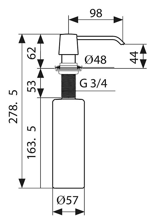 Дозатор Kaiser KH-3016 предназначен для подачи жидкого мыла или моющего средства на кухне. Модель встраивается в кухонную мойку или на столешницу. Дополнительные характеристики: