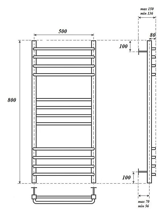Полотенцесушитель водяной Point Омега PN90158S П12 500x800, хром