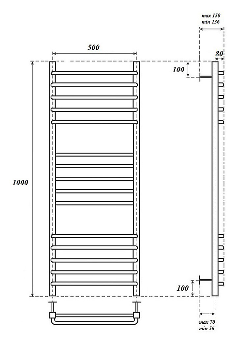 Полотенцесушитель водяной Point Омега PN90150S П15 500x1000, хром