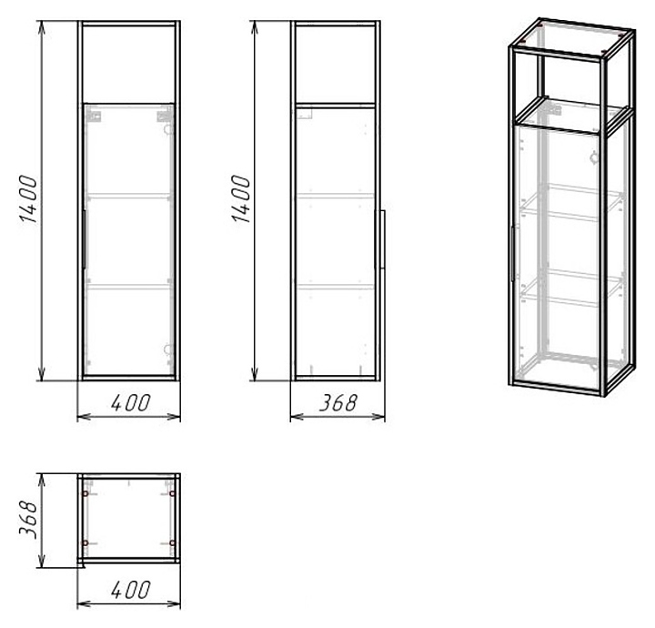 Шкаф-пенал Grossman Лофт 40 см, веллингтон, металл черный