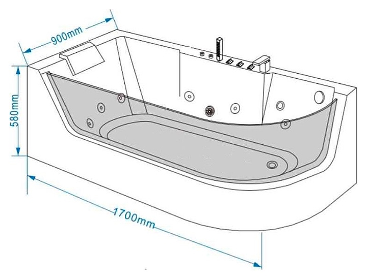 Ванна гидромассажная Grossman GR-17000-1L 80x170 см, левая, акрил