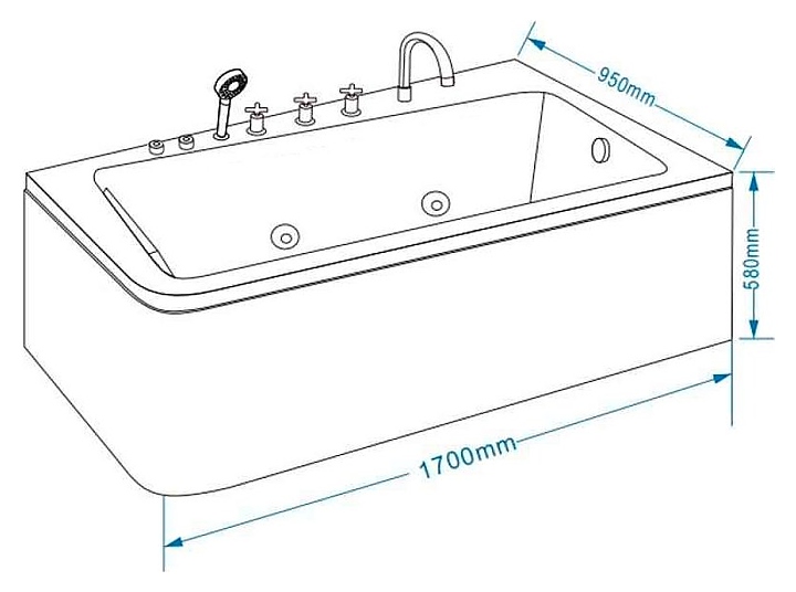 Ванна гидромассажная Grossman GR-17095-1L 95x170 см, левая, акрил
