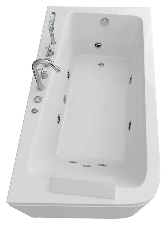 Ванна Grossman GR-17095-1L благодаря стильному современному дизайну гармонично впишется в интерьер ванной комнаты. Модель оснащена системой гидромассажа и подголовником, который делает прием водных процедур и сеансы массажа более удобными. Изделие выполнено из акрила, который мгновенно прогревается, обладает небольшим весом и высокими шумоизоляционными характеристиками, а также устойчив к механическим повреждениям. Комплектация: