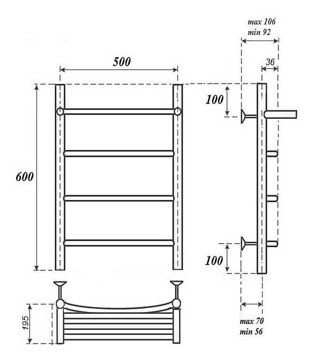 Полотенцесушитель Point PN04156PE предназначен для подогрева и сушки полотенец, а также для обогрева ванных комнат в квартирах, коттеджах, частных домах. Модель оснащена полкой, которая выполняет роль подставки для банных принадлежностей, но в то же время сушит вещи. Преимущество электрических полотенцесушителей состоит в регулировке нагрева из 3-х степеней интенсивности. Изделие выполнено из нержавеющей стали, которая отличается прочностью, долговечностью и устойчивостью к перепадам температур. Полотенцесушитель поставляется с залитым теплоносителем типа "антифриз". Комплектация:
