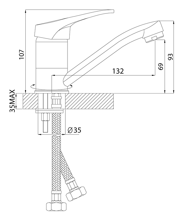 Cмеситель для раковины Rossinka B35-22 предназначен для подачи горячей и холодной воды в ванных помещениях. Однорычажный тип управления позволяет быстро и плавно регулировать подачу воды одной рукой. Модель оснащена керамическим картриджем, обеспечивающим плавный ход рычага смесителя, контроль и точность при выборе напора и температуры воды. Пластиковый аэратор экономит расход воды, уменьшает шум, снижает количество брызг и отличается легкой очисткой. Изделие выполнено из латуни, отличающейся прочностью, долговечностью и устойчивостью к перепадам температур. В комплект поставки входят 2 подводки и универсальная присоединительная группа для горизонтального крепления. Особенности: