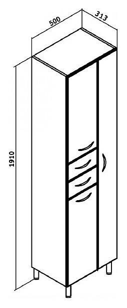 Шкаф-пенал Runo 50 выполнен в современном стиле и идеально впишется в интерьер любой ванной комнаты. Модель оснащена вертикальной секцией для хранения халатов, секцией с верхним отделением с распашной дверью и внутренней полкой, 2 выдвижными ящиками на шариковых направляющих, а также нижним отделением с полкой, бельевой корзиной и откидной дверью. Корпус выполнен из влагостойкой ЛДСП, фасад - из МДФ с пленкой ПВХ, которая отличается устойчивостью к повышенной влажности и простотой в уходе. Комплект поставки: