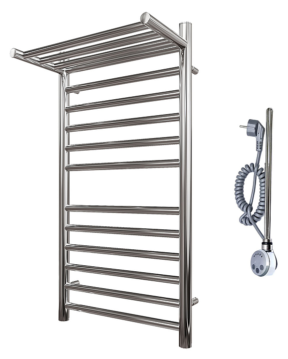 Полотенцесушитель электрический Point Аврора Премиум PN10158SPE П11 500x800 с полкой, хром