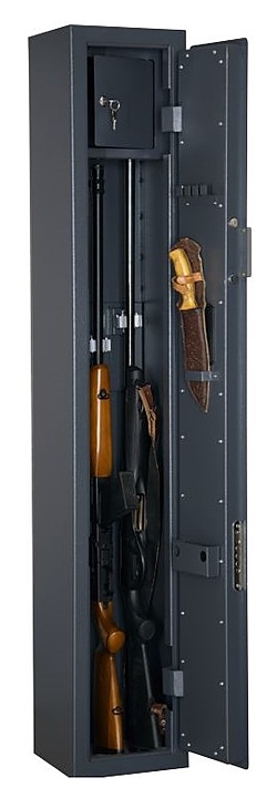 Сейф Меткон ОШ-3Э предназначен для хранения оружия, патронов и принадлежностей. Модель оснащена отверстиями для крепления на задней стенке корпуса, отделением под патроны, электронным замком и замком «Бордер». Ложементы выполнены из металла с резиновыми роликами. Металлический сейф окрашен полимерной краской. Дополнительные характеристики: