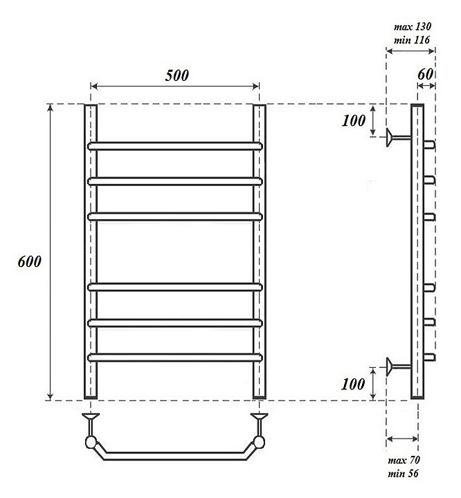 Полотенцесушитель электрический Point Венера PN07156E П6 500x600, хром