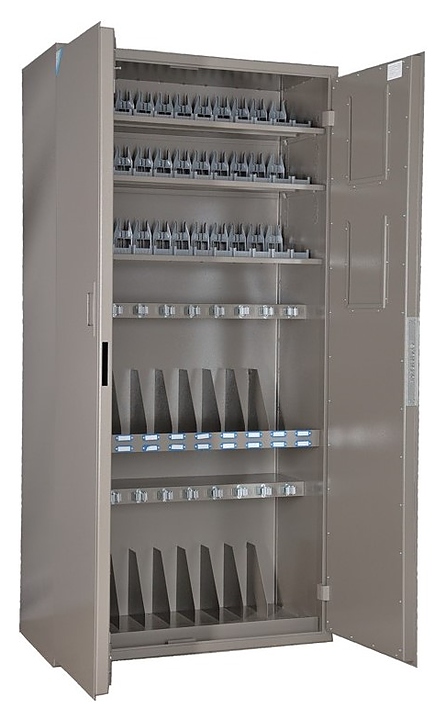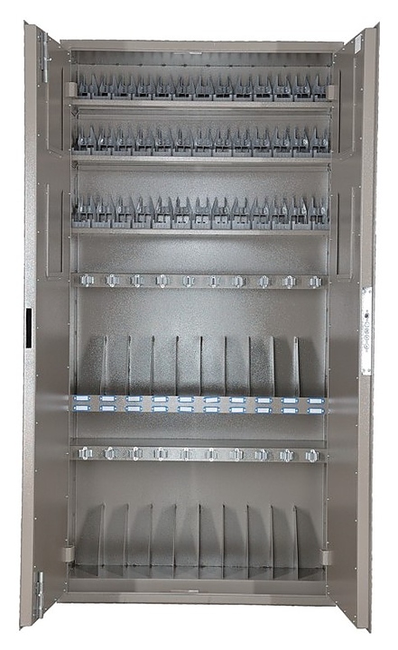 Сейф Меткон ОШ-20 АКСУ-39 ПУ предназначен для хранения оружия, патронов и принадлежностей. Модель оснащена 39 подставками под пистолет ПУ. Ложементы выполнены из металла с резиновыи роликами, подставки - из пластика. Дополнительные характеристики:
