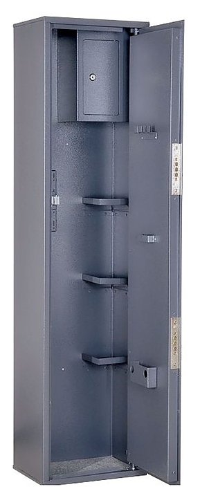 Сейф оружейный Меткон Стрелец-2 предназначен для хранения оружия, патронов и принадлежностей. Модель оснащена 3-мя съёмными полками, трейзером под пароны, роликовыми ложементами, ковриком и отверстиями для крепления к стене. В дверь установлены 2 замка сувальдного типа «Border». Дополнительные характеристики: