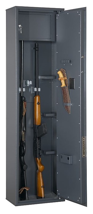 Сейф оружейный Меткон Стрелец-4Э предназначен для хранения оружия, патронов и принадлежностей. Модель оснащена 3-мя съёмными полками, ковриком, трейзером и 2 отверстиями для крепления к стене. В дверь установлены электронный кодовый и сувальдный типа «Border» замки. Роликовые ложементы выполнены из пластика. Дополнительные характеристики:
