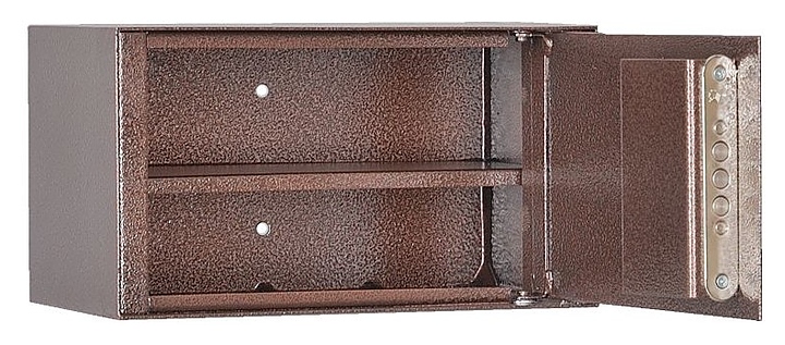 Пистолетный сейф Меткон ШП-2 предназначен для хранения оружия и патронов. Модель оснащена съемной полкой и отверстиями для крепления к стене. В двери установлен ключевой сувальдный замок ООО «Бордер» г. Рязань или аналогичный замок другого производителя. Дополнительные характеристики: