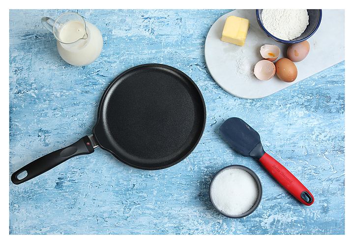 Блинная сковорода Swiss Diamond XD 6224 предназначена для выпечки блинов и приготовления других блюд на любых типах варочных поверхностей кроме индукционных на предприятиях общественного питания и торговли, а также в домашних условиях. Модель оснащена сбалансированной фиксированной рукояткой с отверстием для подвешивания. Корпус выполнен из сплава алюминия и кремния методом литья под высоким давлением с последующей пескоструйной шлифовкой и плазменным напылением для усиления адгезии внешнего покрытия, рукоятка – из термостойкого бакелита. Особенности: