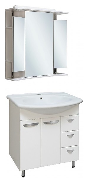 Зеркальный шкаф Runo Валенсия 75 выполнен в современном стиле и идеально впишется в интерьер любой ванной комнаты. Благодаря подвесной конструкции модель не занимает много места, что позволяет экономить пространство, а также облегчает уборку. Модель оснащена 3 распашными дверцами, 6 внутренними полками, зеркалом, 2 светодиодными светильниками и розеткой с выключателем. Корпус выполнен из влагостойкой ЛДСП, фасад - из МДФ с пленкой ПВХ. Особенности: