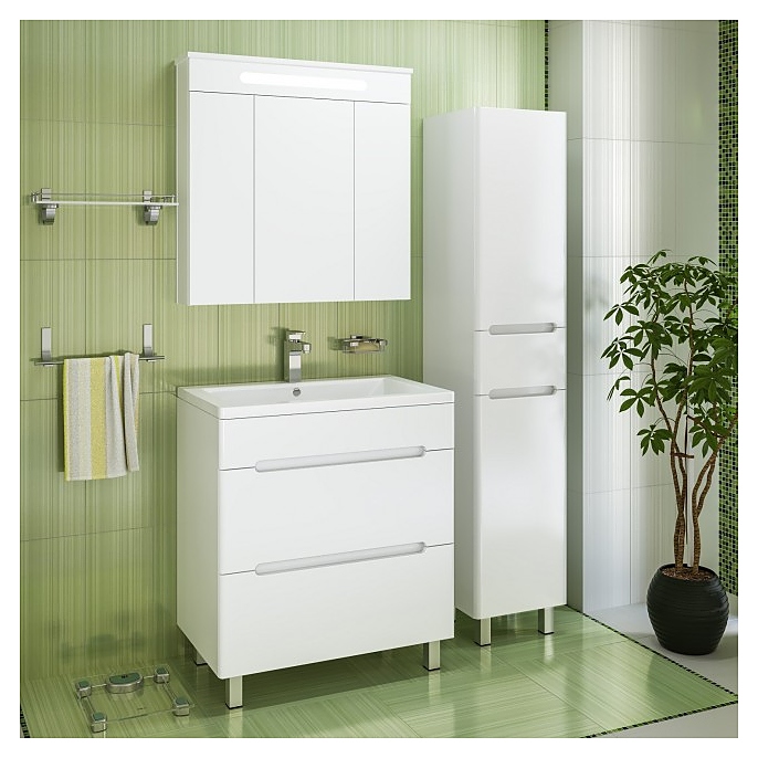 Зеркальный шкаф Runo Парма 75 выполнен в современном стиле и идеально впишется в интерьер любой ванной комнаты. Благодаря подвесной конструкции модель не занимает много места, что позволяет экономить пространство, а также облегчает уборку. Модель оснащена 3 распашными дверцами с зеркальным фасадом и 2 внутренними полками, врезным светодиодным светильником и розеткой с выключателем. Корпус выполнен из влагостойкой ЛДСП, фасад - из МДФ с пленкой ПВХ. Особенности: