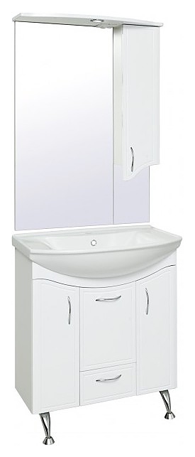Зеркальный шкаф Runo Севилья 75 выполнен в современном стиле и идеально впишется в интерьер любой ванной комнаты. Благодаря подвесной конструкции модель не занимает много места, что позволяет экономить пространство, а также облегчает уборку. Модель оснащена распашной дверцей с ручкой, внутренней полкой, зеркалом, врезным светодиодным светильником и розеткой с выключателем. Корпус выполнен из влагостойкой ЛДСП, фасад - из МДФ с пленкой ПВХ. Особенности: