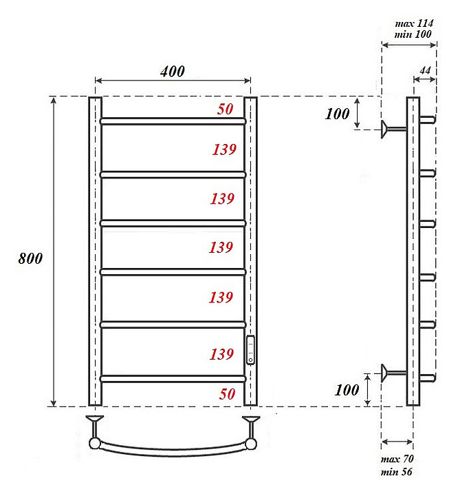 Полотенцесушитель электрический с диммером Point Афина PN04848 П6 400x800 диммер справа, хром