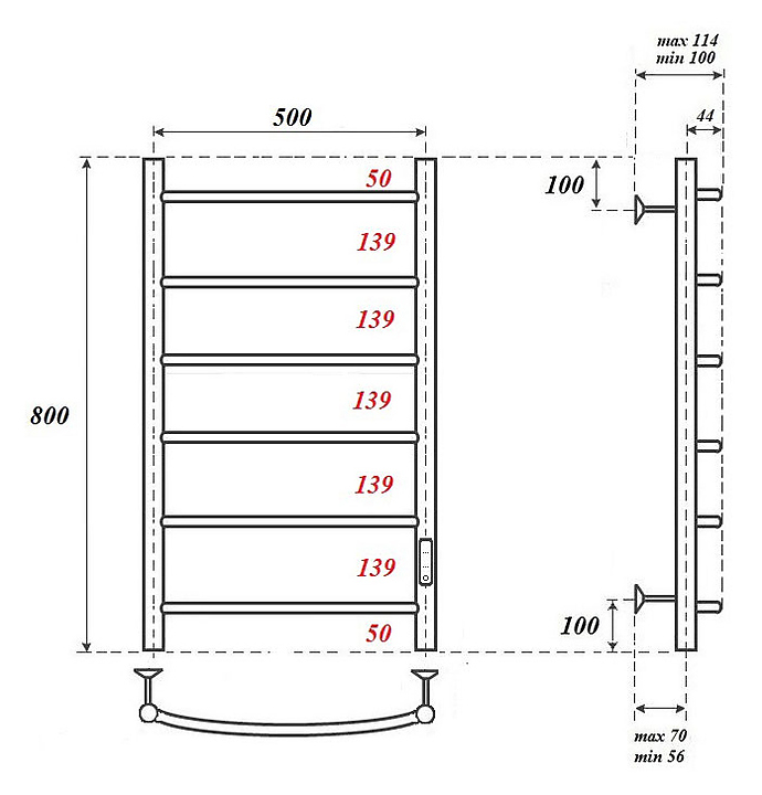 Полотенцесушитель электрический с диммером Point Афина PN04858 П6 500x800 диммер справа, хром