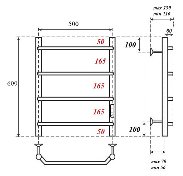 Полотенцесушитель электрический с диммером Point Виктория PN06856 П4 500x600 диммер справа, хром