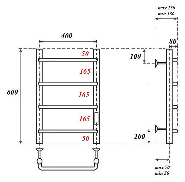 Полотенцесушитель электрический с диммером Point Ника PN08846 П4 400x600 диммер справа, хром