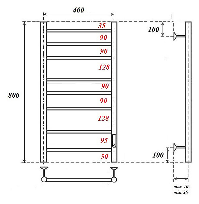 Полотенцесушитель электрический с диммером Point Аврора PN10848 П8 400x800 диммер справа, хром