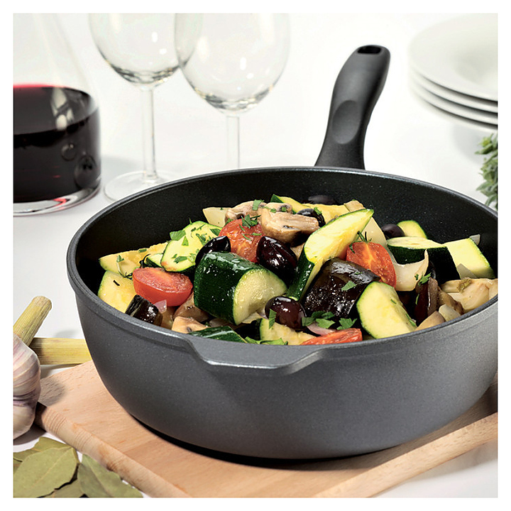Сотейник Swiss Diamond XD 6726IC предназначен для приготовления широкого спектра блюд на любых типах варочных поверхностей, включая индукционные, на предприятиях общественного питания и торговли, а также в домашних условиях. Модель оснащена 2 рукоятками: сбалансированной фиксированной длинной с отверстием для подвешивания и цельнолитой вспомогательной. Корпус выполнен из сплава алюминия и кремния методом литья под высоким давлением с последующей пескоструйной шлифовкой и плазменным напылением для усиления адгезии внешнего покрытия, длинная рукоятка – из термостойкого бакелита, крышка – из закаленного стекла на металлическом ободе. В комплект поставки входит крышка с круглой ручкой и регулируемым паровым отверстием. Особенности: