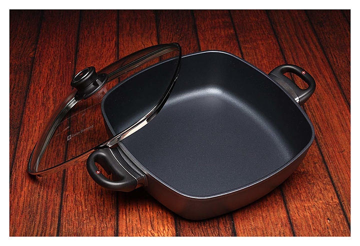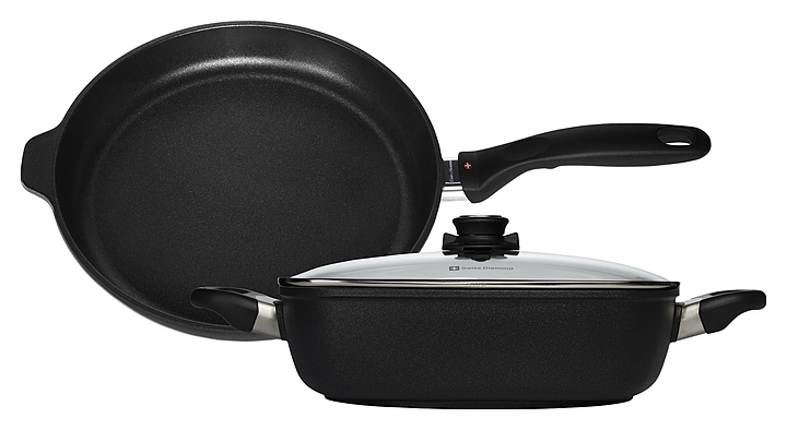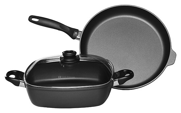 Набор наплитной посуды Swiss Diamond XD SET328I предназначен для приготовления широкого спектра блюд на любых типах варочных поверхностей, включая индукционные, на предприятиях общественного питания и торговли, а также в домашних условиях. Корпусы выполнены из сплава алюминия и кремния методом литья под высоким давлением с последующей пескоструйной шлифовкой и плазменным напылением для усиления адгезии внешнего покрытия, рукоятки – из термостойкого бакелита, крышка – из закаленного стекла на металлическом ободе. Комплектация: