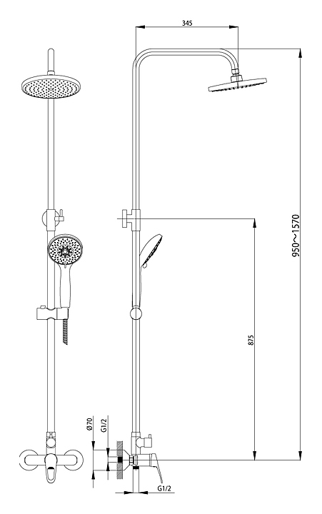 Душевая стойка Rossinka B35-45 используется в ванных комнатах. Модель имеет круглые лейку и верхний душ. Стойка оснащена керамическим картриджем, обеспечивающим плавный ход рычага смесителя, контроль и точность при выборе напора и температуры воды. Комплектация: