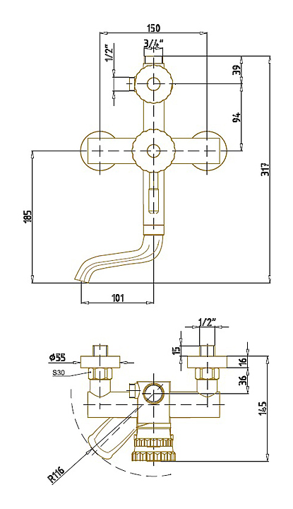 Стойка душевая Bronze de Luxe Windsor 10120R верхний душ круг, излив короткий